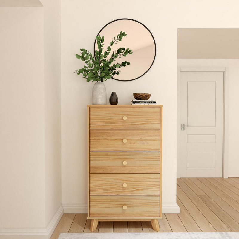 Designed to beautifully organize all your essentials. Our Classic 5-Drawer Tall Dresser combines solid wood construction with five spacious drawers to create the perfect storage complement piece. smooth Euro glides continue the solid wood look and create an easy opening. Crafted with clean, low VOC finishes, this dresser pairs with any one of our Classic Beds for the perfect match.